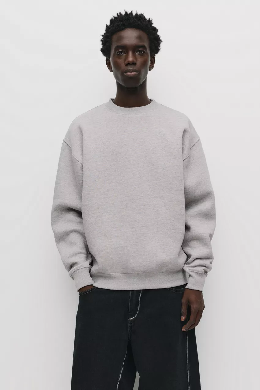 Basic crew neck sweatshirt available in several colors and made of a cotton blend.